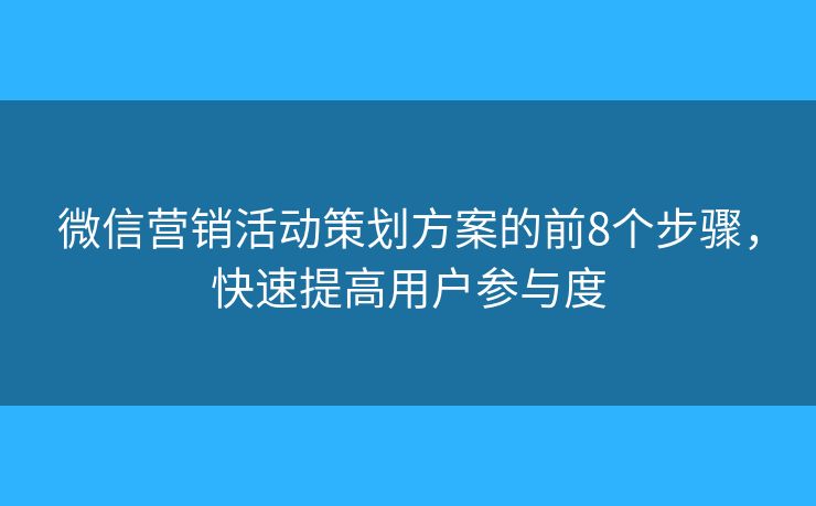 微信营销活动策划方案的前8个步骤,快速提高用户参与度