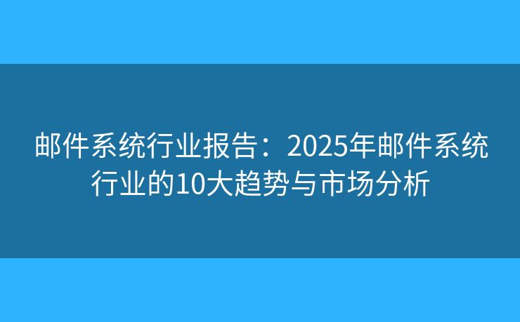 大家好,欢迎阅读本篇《邮件系统行业报告:2025年邮件系统行业的10大趋势与市场分析》!在这篇文章中,我们将深入探讨未来几年的邮件系统行业趋势,帮助企业了解如何应对即将到来的变化。作为邮件系统行业的一份重要分析报告,本文将聚焦最关键的技术和市场变化,力求为业内人士提供有价值的参考。
