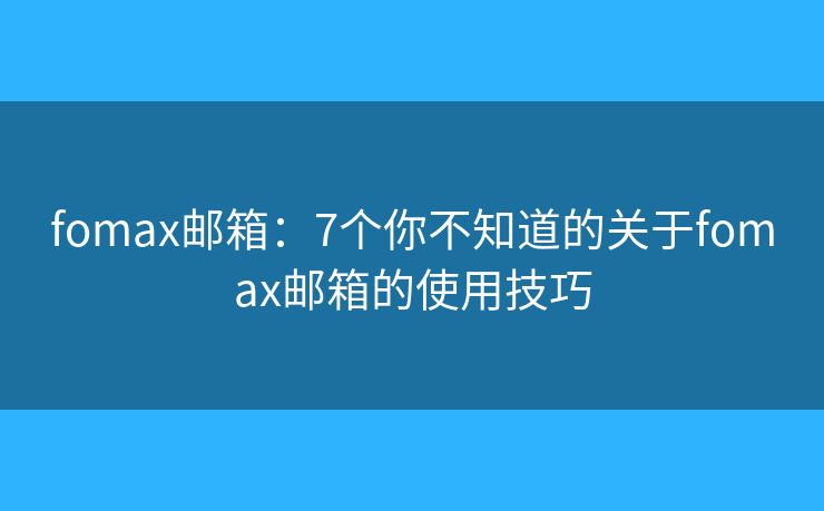 fomax邮箱:7个你不知道的关于fomax邮箱的使用技巧