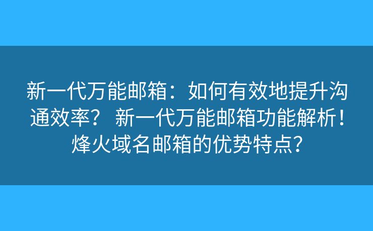 新一代万能邮箱:如何有效地提升沟通效率? 新一代万能邮箱功能解析!烽火域名邮箱的优势特点?
