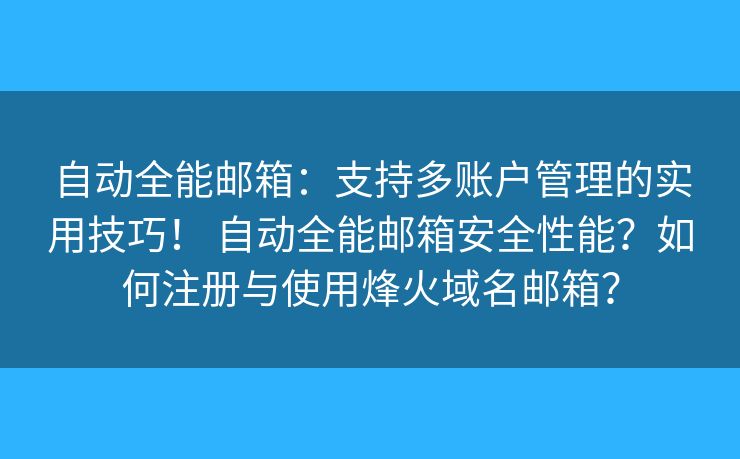 自动全能邮箱:支持多账户管理的实用技巧! 自动全能邮箱安全性能?如何注册与使用烽火域名邮箱?