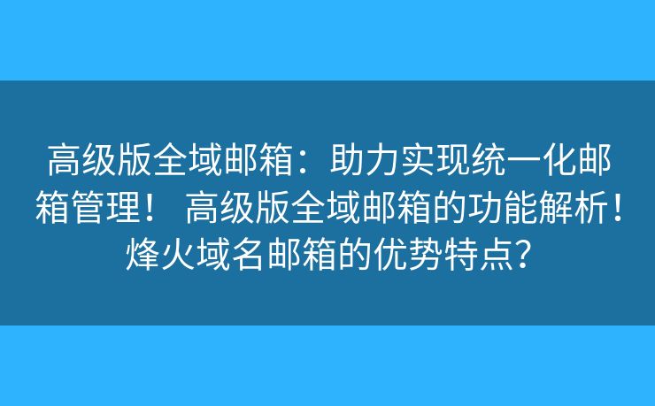 高级版全域邮箱:助力实现统一化邮箱管理! 高级版全域邮箱的功能解析!烽火域名邮箱的优势特点?